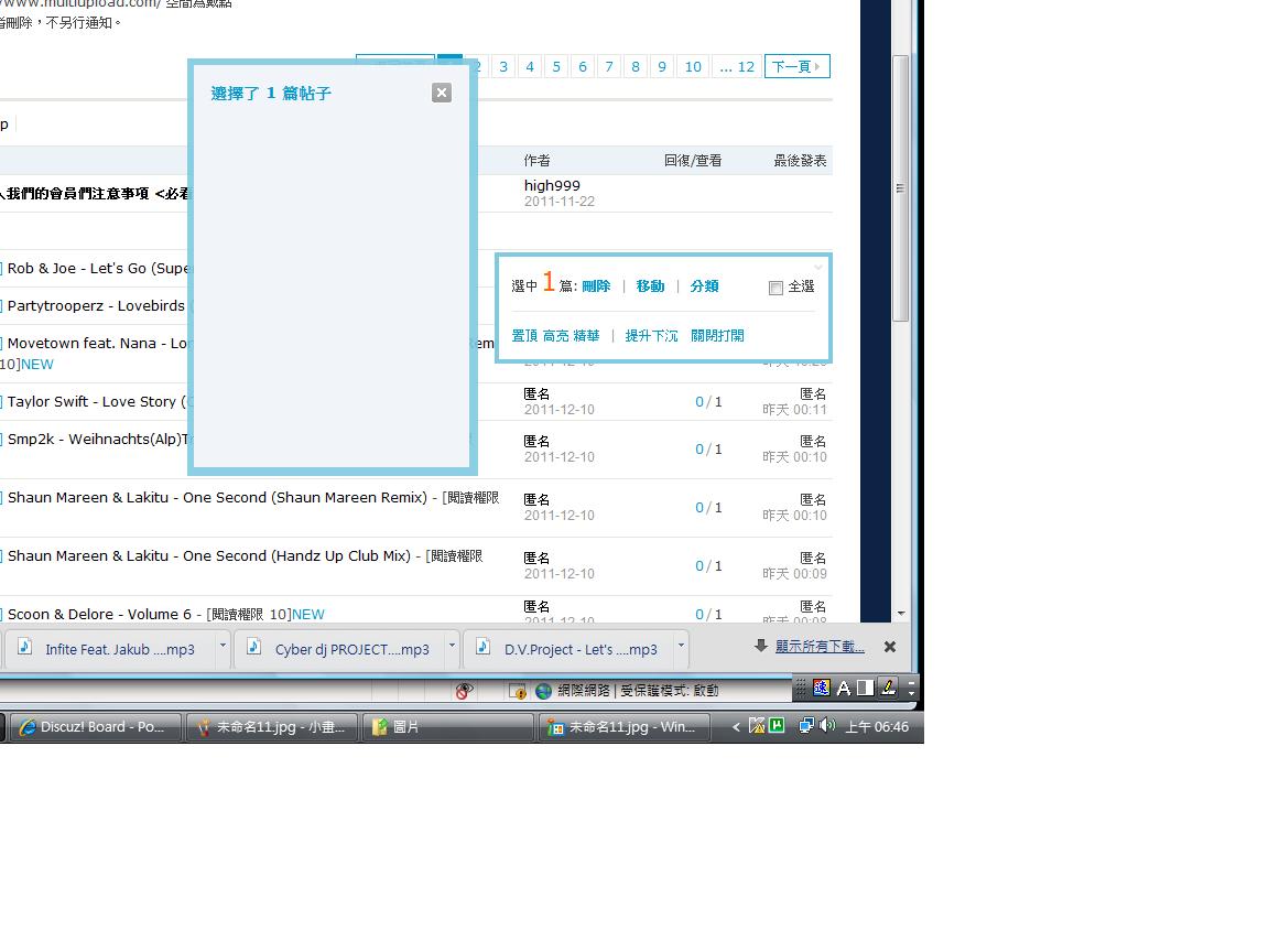 要頂置 或刪帖 移動 帖子時 圖是一片空白
