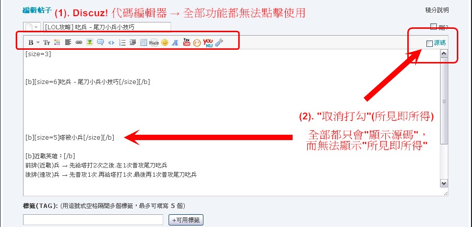 (1). Discuz! 代碼編輯器 → 全部功能都無法點擊使用