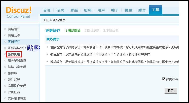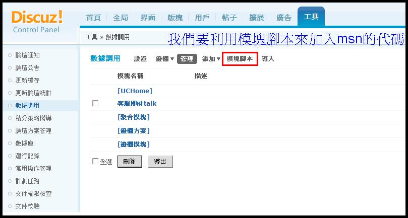 8. 複製代碼後,登入Discuz後台,利用「工具」來加入代碼