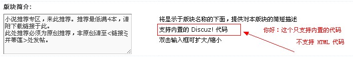 请问:可以在版块介绍中使用html代码吗
