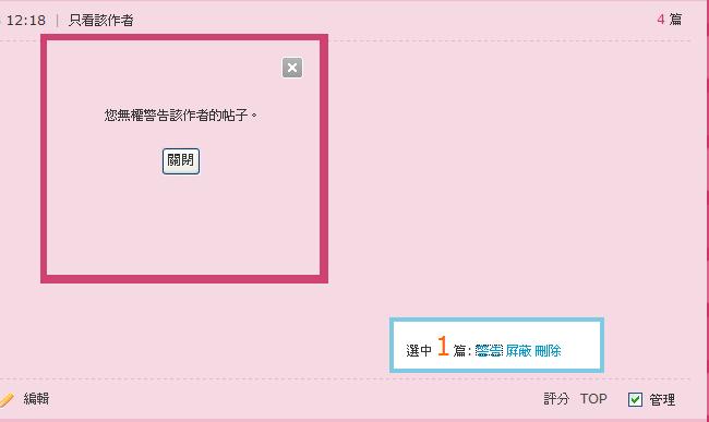 1# fishinhouse 如果你试图警告 版主、超级版主、特殊用户组的会员,就会有这样的提示。 bsy 發表於 2010-6-29 19:46